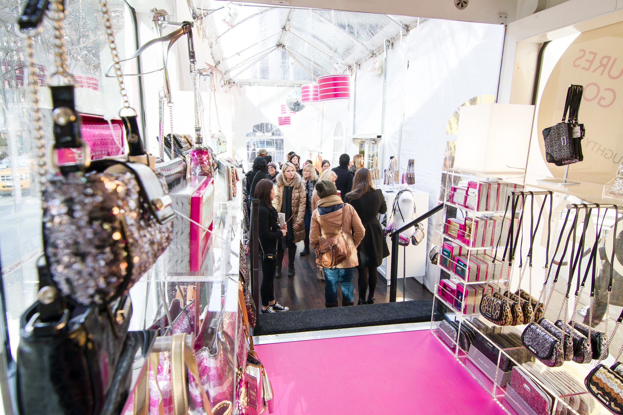 With a larger-than-life pink bow adoring the roof of a fully branded glass truck, anchored by a 30′ clear-top tent, everyone in eyesight knew something fantastic was happening and stopped by to check it out. With over 2,300 consumers engaged, 300 handbags sold, stellar design touches and a make-it-happen attitude – In partnership with TH Productions; mission accomplished.